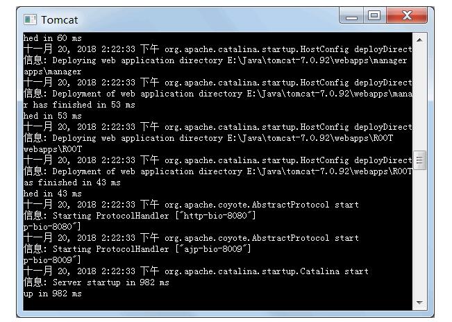(3) 进入 Tomcat 安装目录下的 bin 子目录,可以看到 startup.bat 和 shutdown.bat 文件。双击 startup.bat 启动 Tomcat 服务器,将产生如图 3 所示的输出信息。